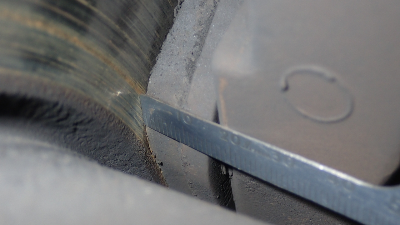 フロントブレーキパッド残量は約8.0mmです。