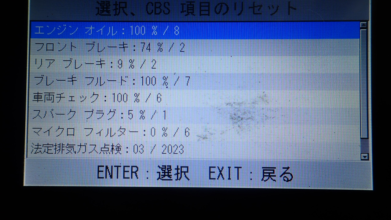 テスターにて故障コードの確認と、サービスのリセットを実施しています。