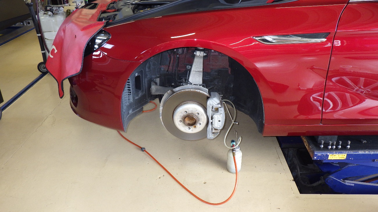 フロント側のブレーキオイルの交換作業様子になります。