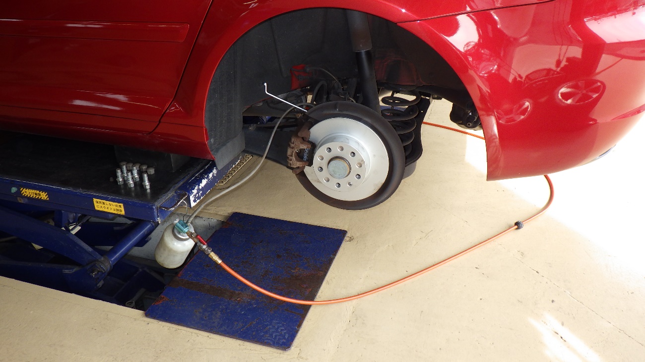 リヤ側のブレーキオイルの交換様子になります。