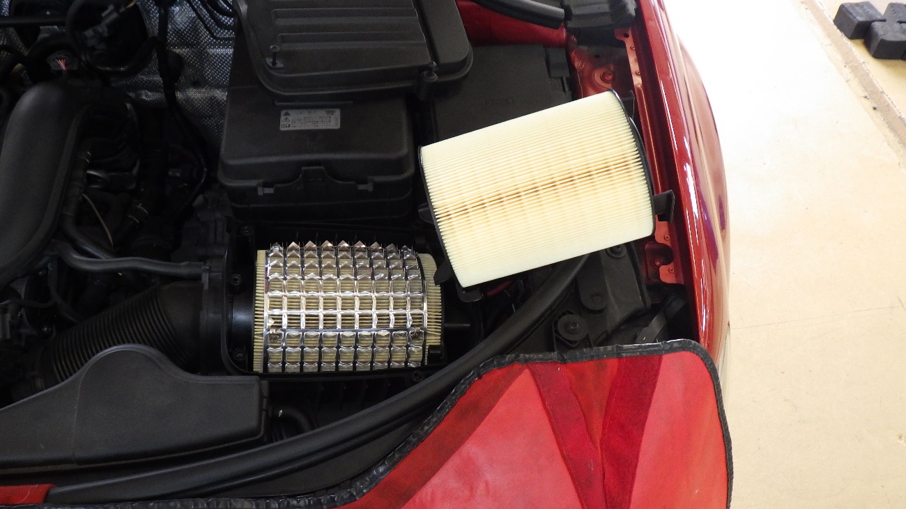 社外品のパーツが取り付いていたので、新しいエアクリーナエレメント組付けております。