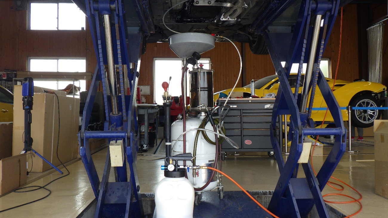 その後リフトアップを行い下廻りのチェックを実施。オイル漏れは改善致しました。