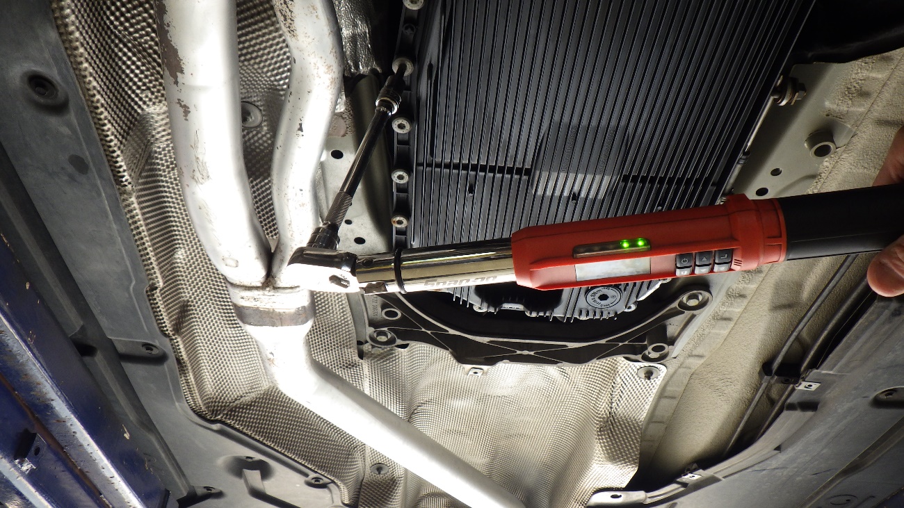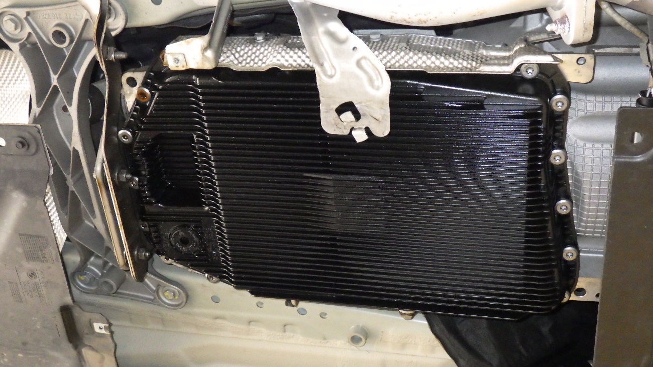 新しいオイルパンに交換した様子になります。