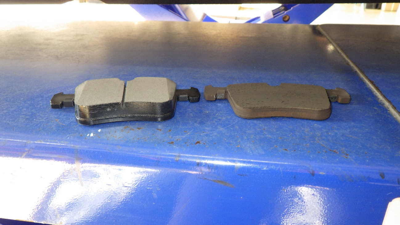 取り外したブレーキパッドの比較です。左が新品です。