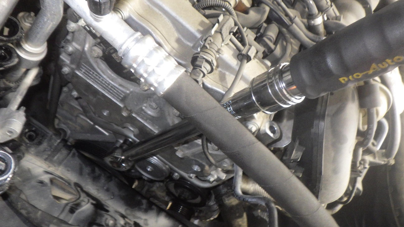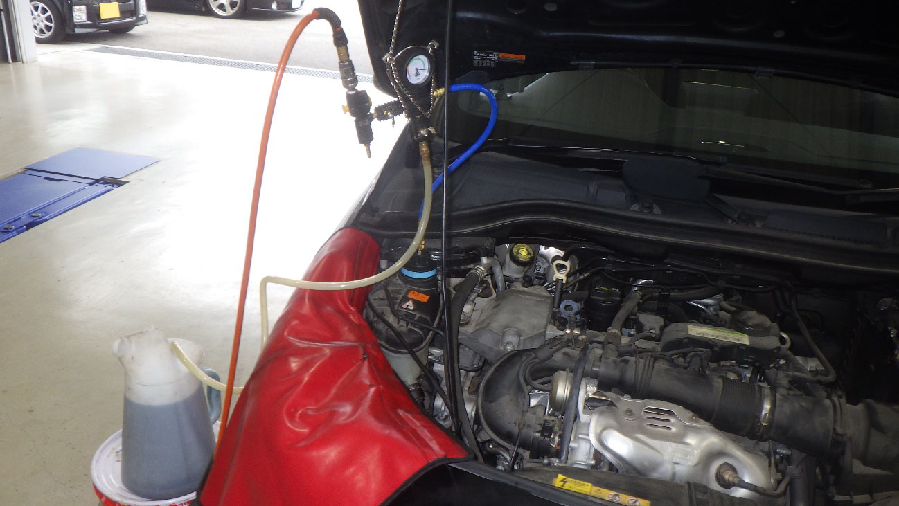 専用の機械で冷却水通路内を真空状態にし、冷却水を入れ、漏れの無いことを確認して完了です。