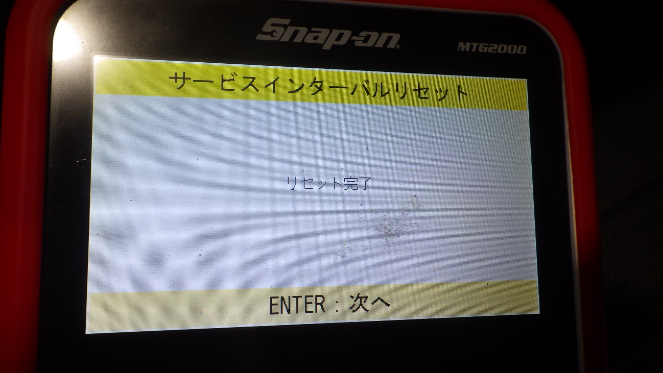テスターにて故障コードの確認と、サービスのリセットを実施しています。