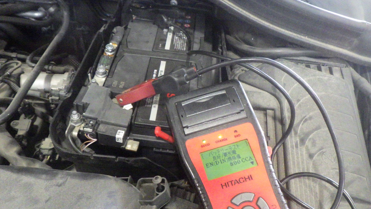 テスターにてバッテリーの点検を実施しています。