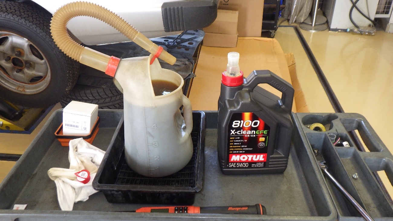 エンジンオイルの交換様子になります。