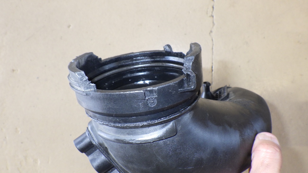 チャージエアダクトの先端部が3分の2程割れて無くなっておりました。