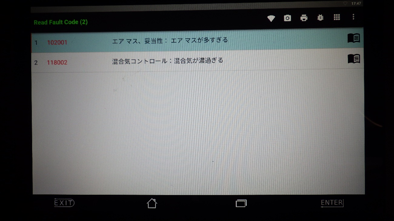 前回と同様にエアマス関連にエラーが表示されておりましたので、