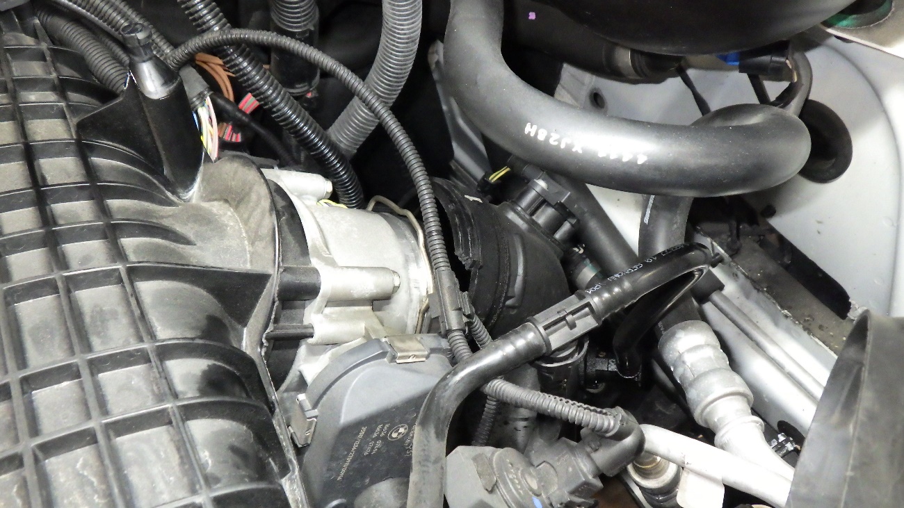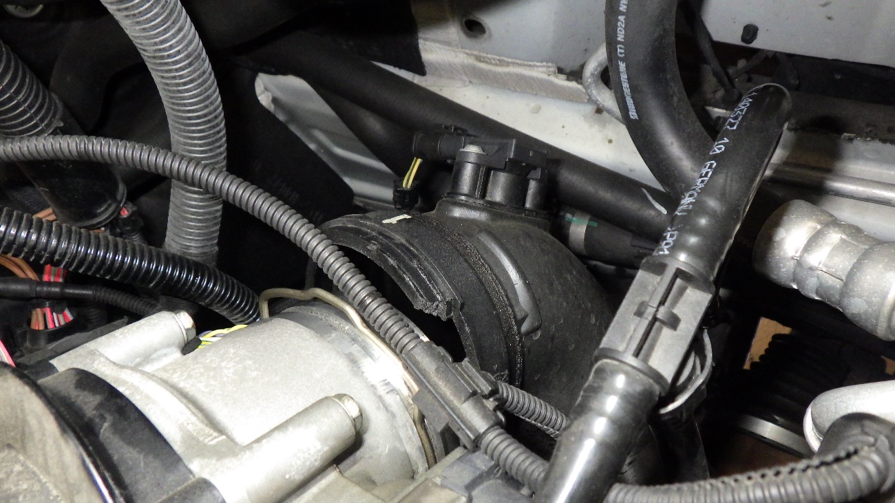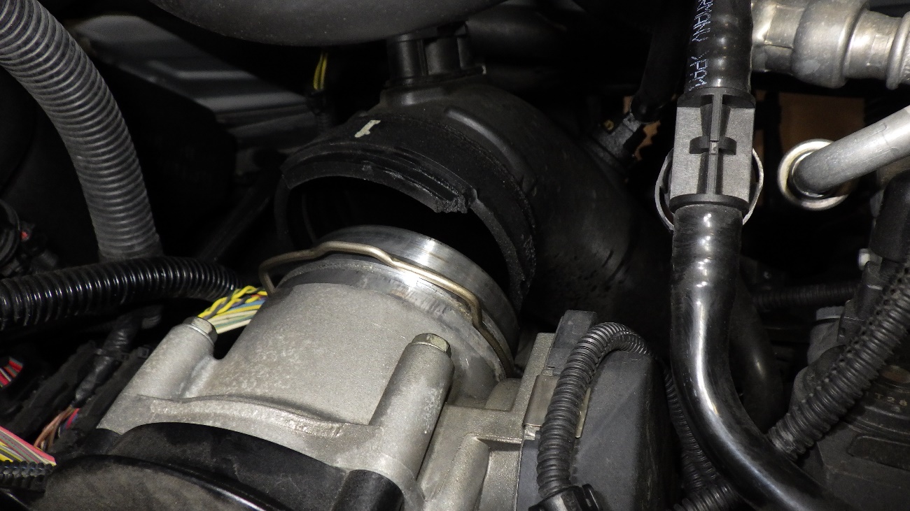 エア周辺を点検した結果、スロットルボディ~インタークーラー間のチャージエアダクトが完全に割れておりました。