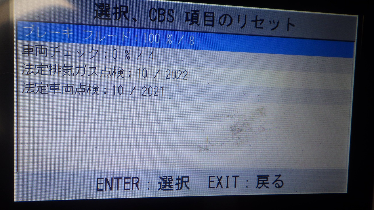 テスターにて故障コードの確認と、サービスのリセットを実施しています。