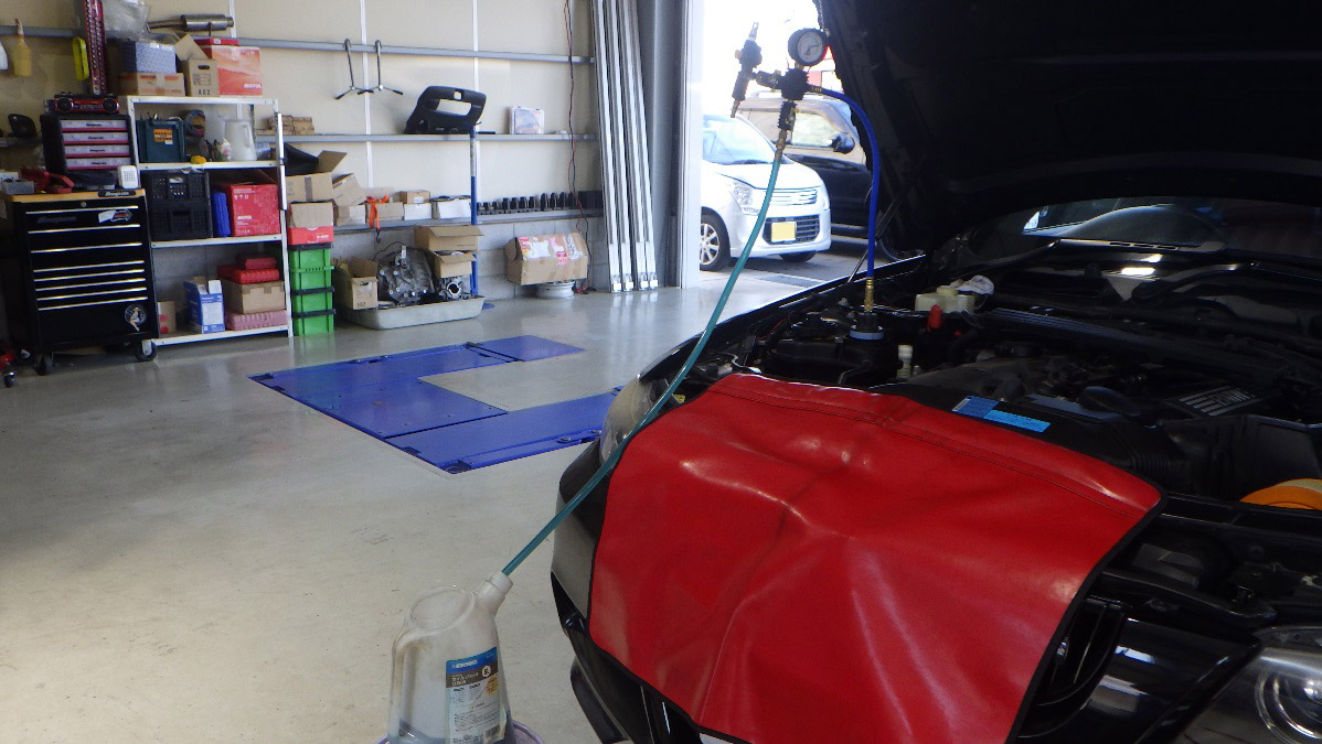 冷却系統真空にし、新品のクーラントを補充していきます。