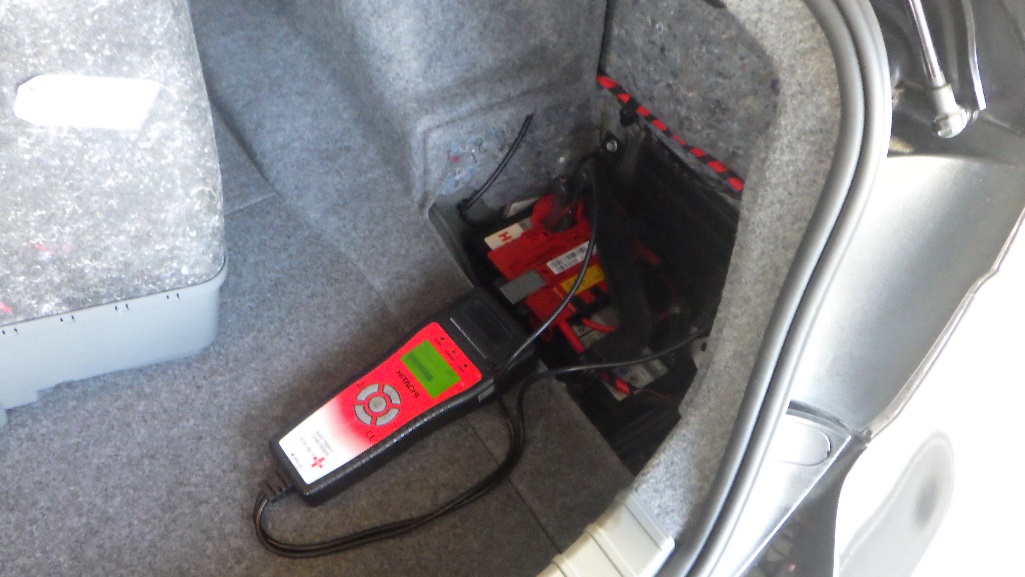 テスターにてバッテリーの点検を実施しています。