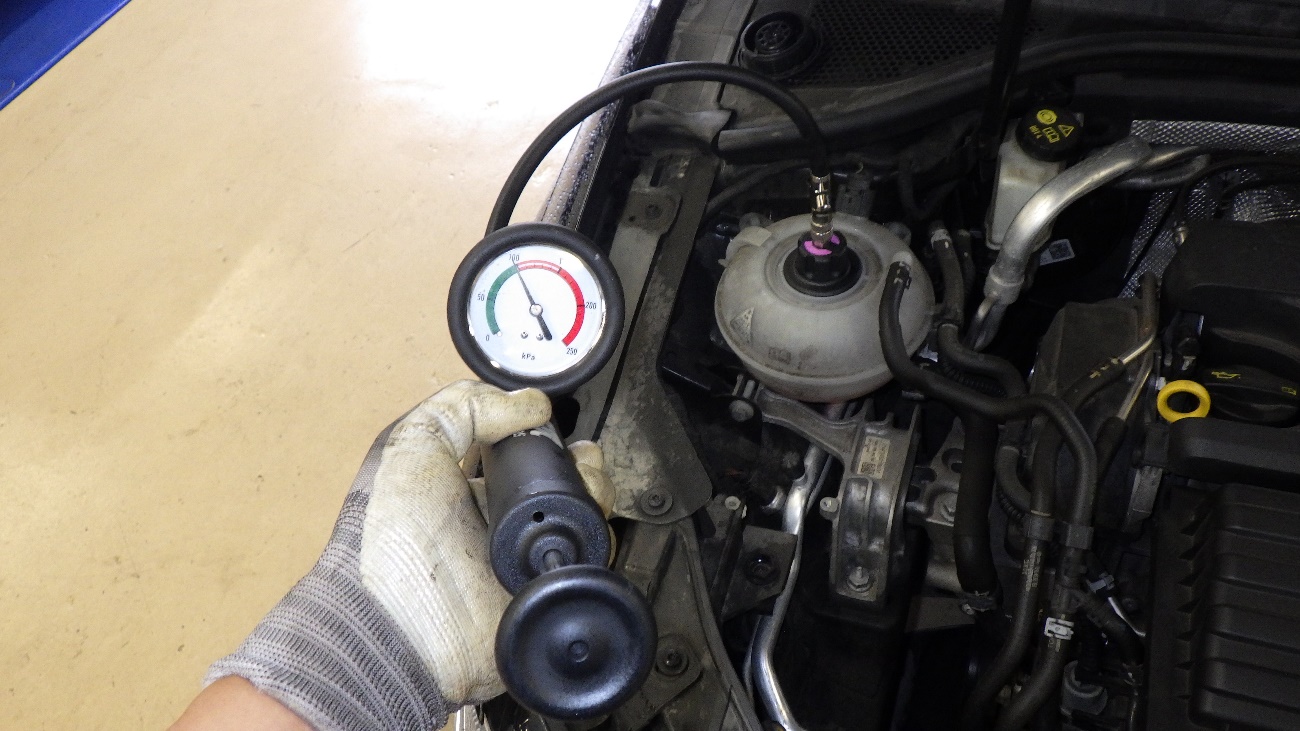 早速、加圧テストを行い漏れの箇所を特定作業に取り掛かって参ります。