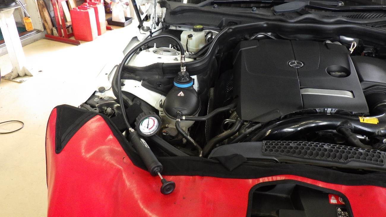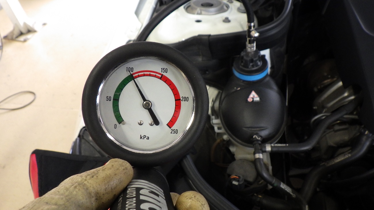 オイルクーラー交換後、LLCの補充及び加圧テストを実施。