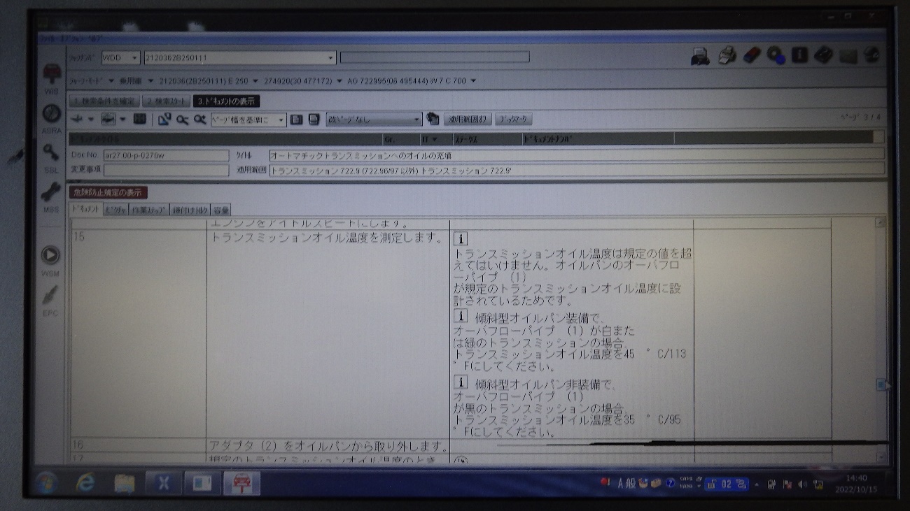 規定温度まで到達致しましたので、これよりオイル量の確認を行って参ります。
