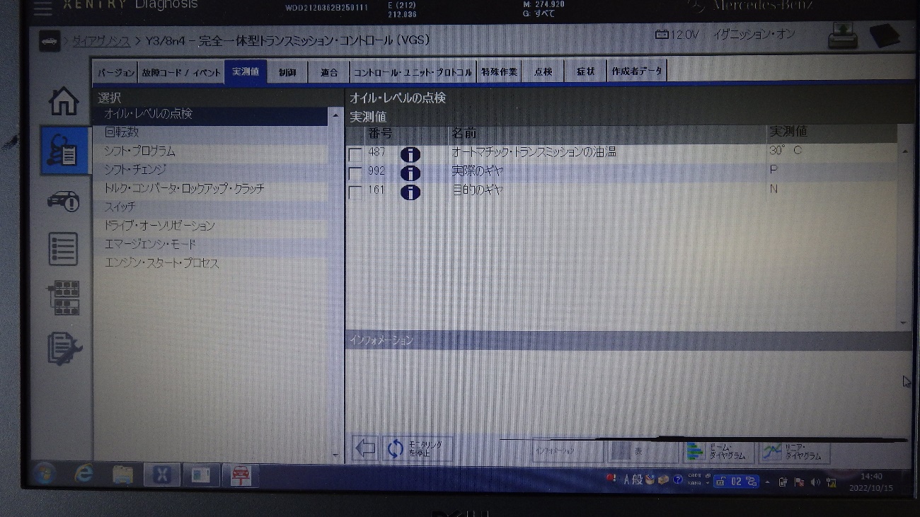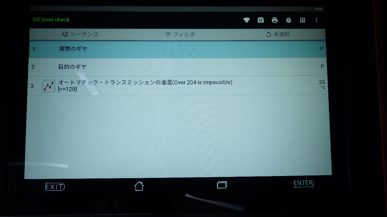 その後は純正マニュアルの指示通りアイドリングを行い、各シフトポジションを変え
