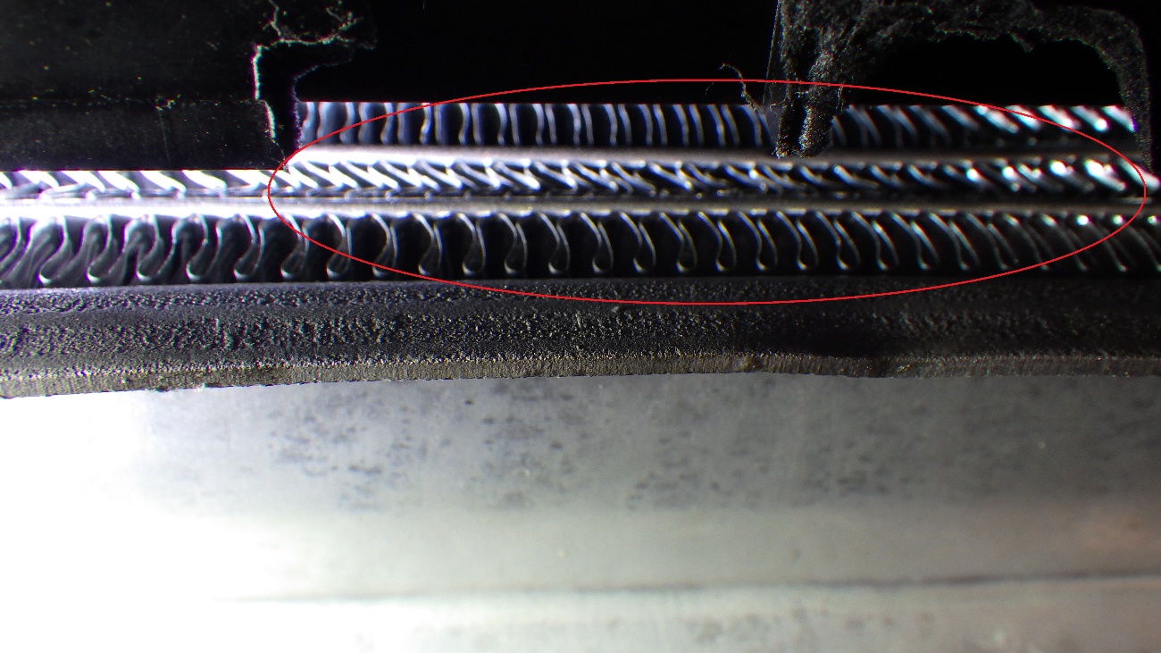 赤丸の部分になりますが、通常の形より変形しておりました。