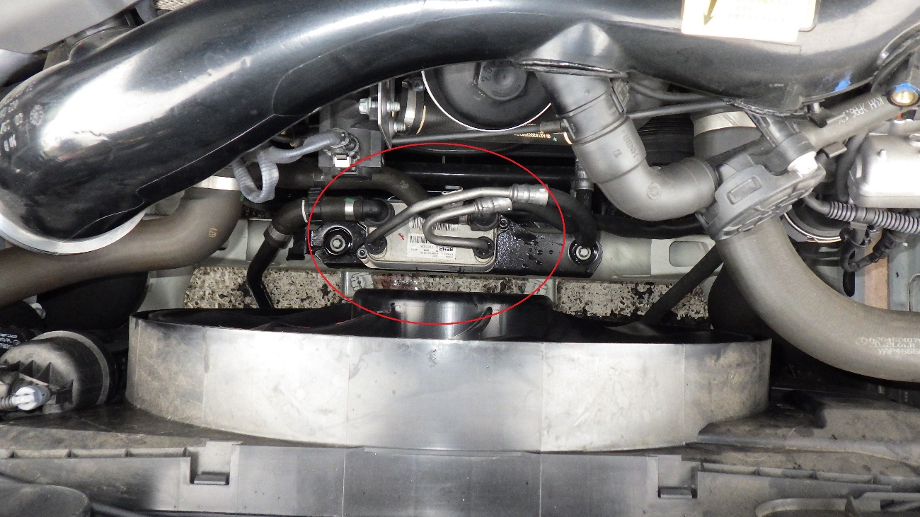 中央赤丸部分がオイルクーラーになります。