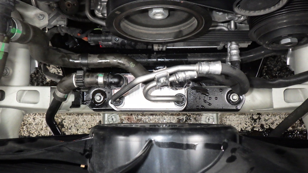 オイルクーラーが組み付いた状態になります。