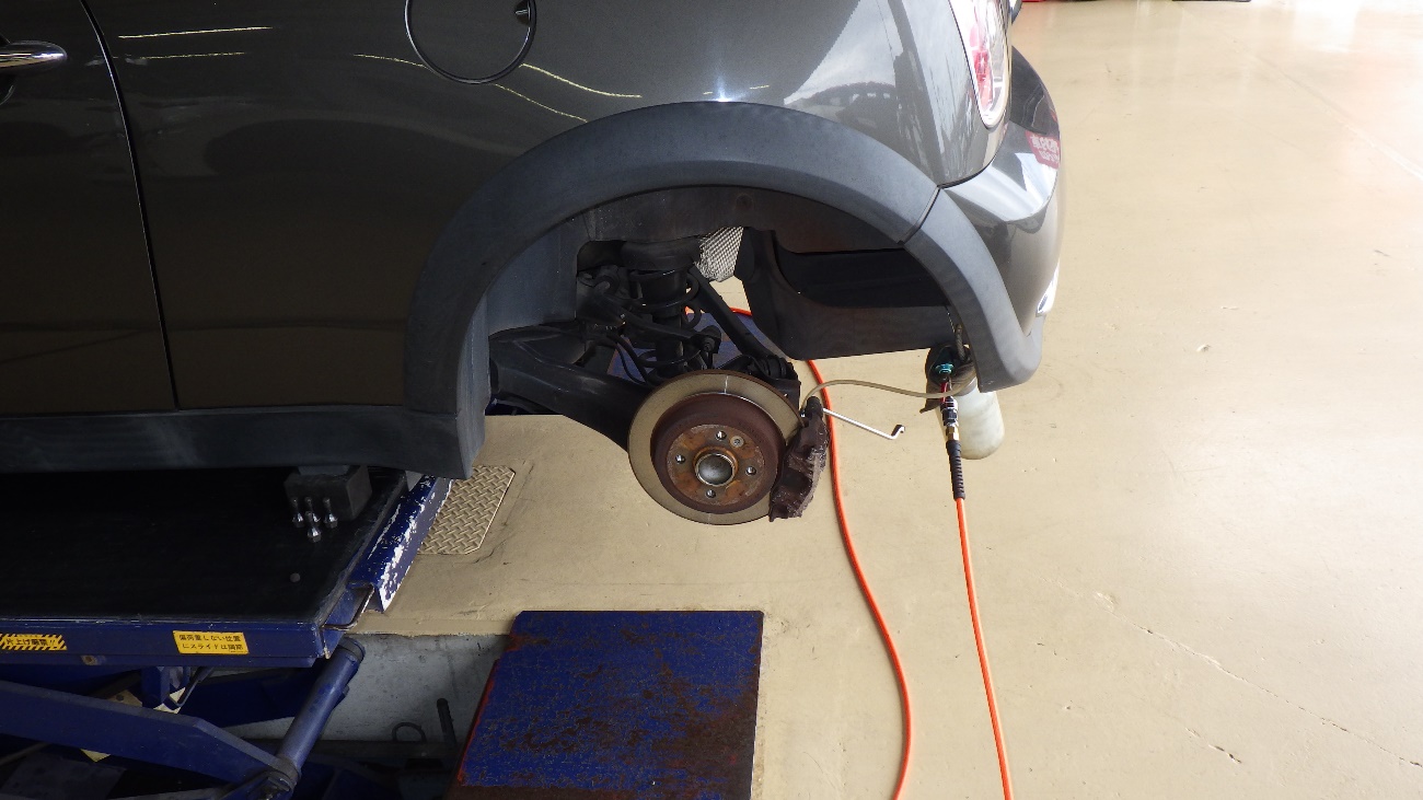 リヤ側のブレーキオイル交換様子になります。