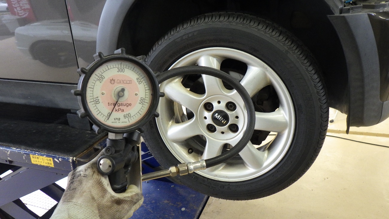新しく交換したタイヤの空気圧の調整を実施しております。