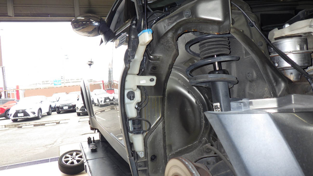 リフトアップを行い、フロント部の下廻りの様子になります。