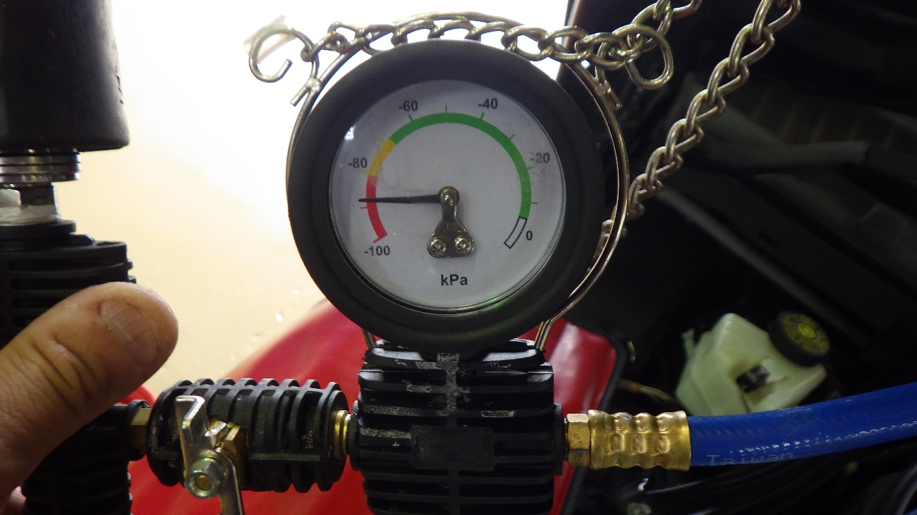真空状態を保持している事を確認してからクーラントを補充しております。