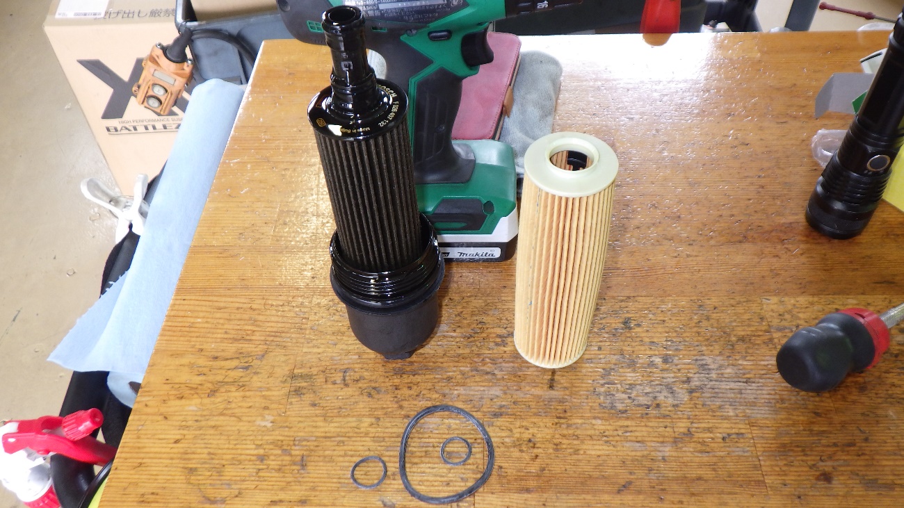 エンジンオイルフィルターを外した様子になります。