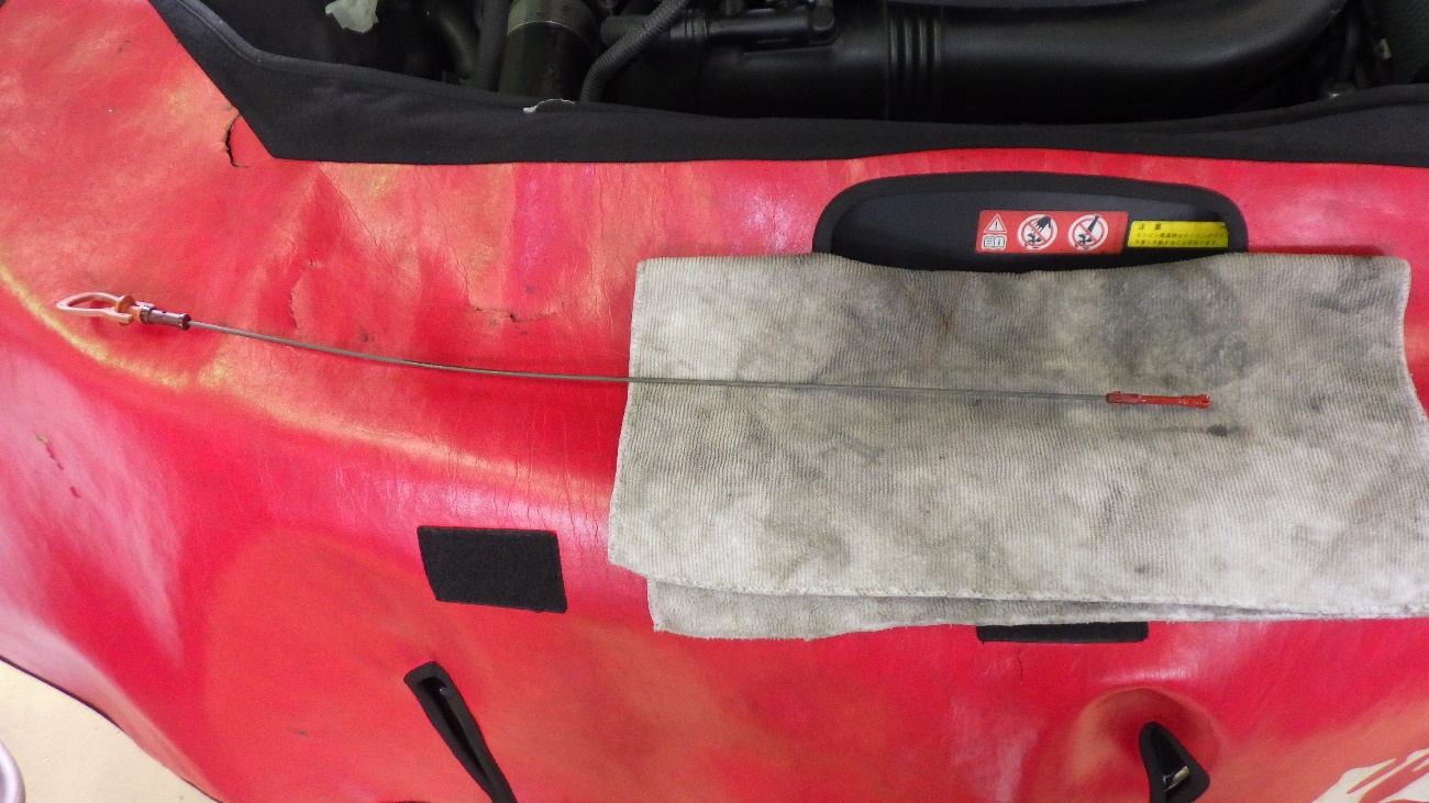エンジンオイル交換後、レベルゲージにてオイル量を調整しております。