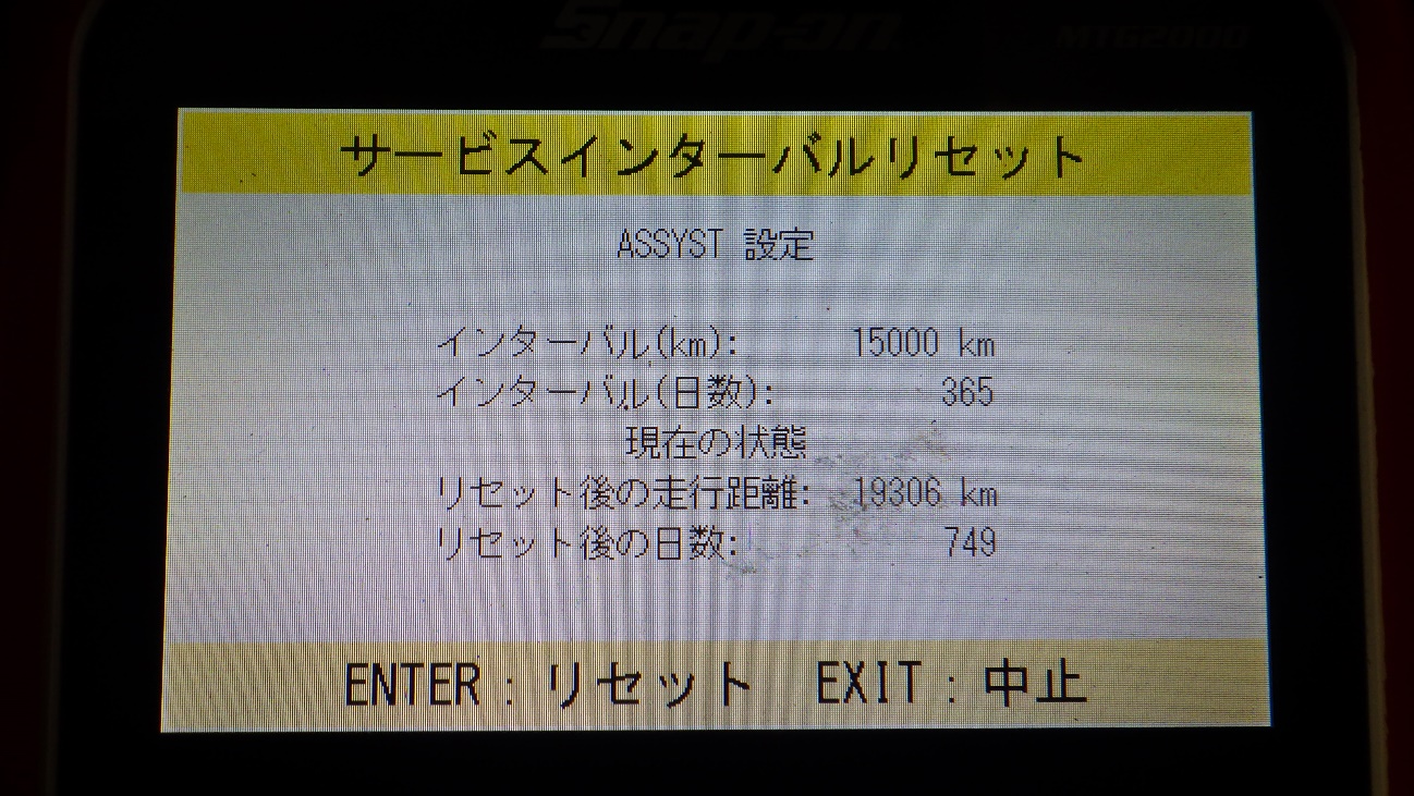 テスターにて故障コードの確認と、サービスのリセットを実施しています。