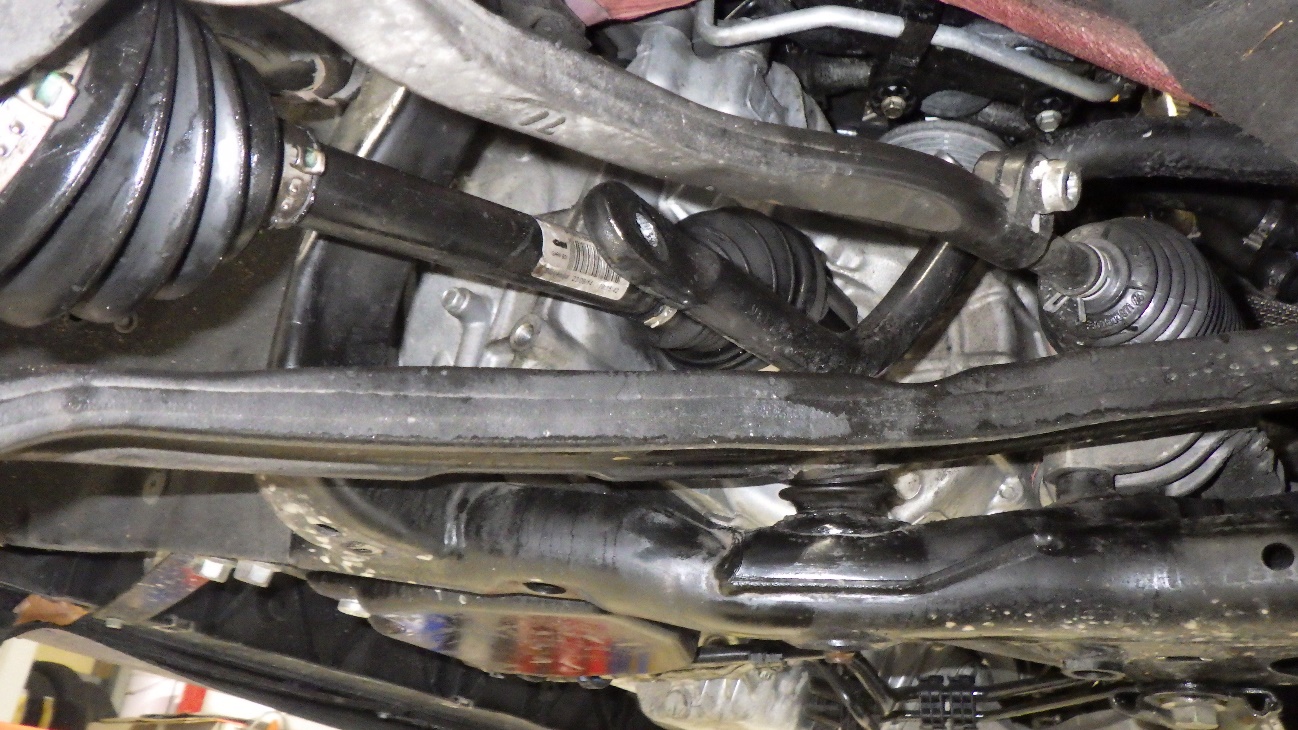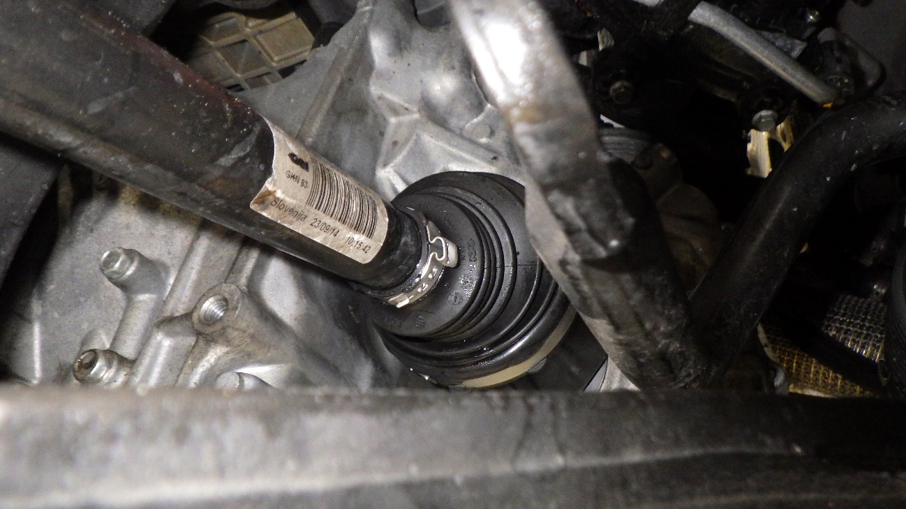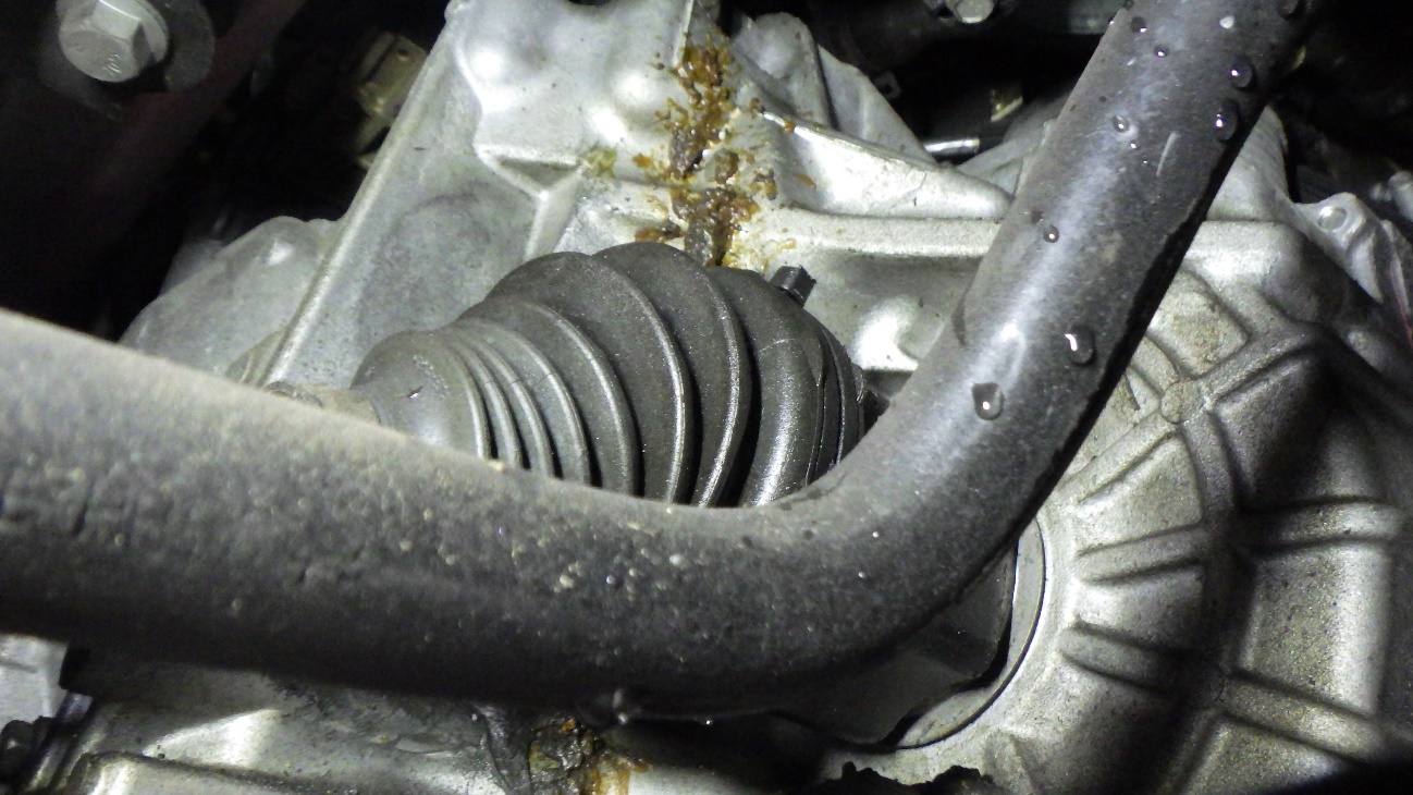 左内側のドライブシャフトブーツバンドの根本より