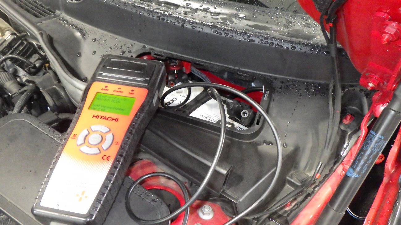 テスターにてバッテリーの点検を実施しています。