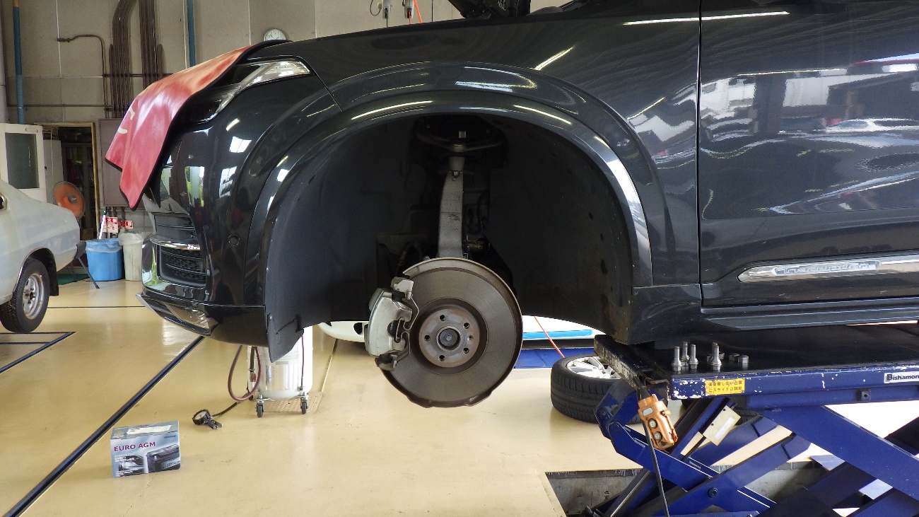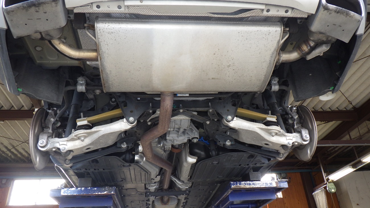 リフトアップを行い、フロント部の下廻りの様子になります。