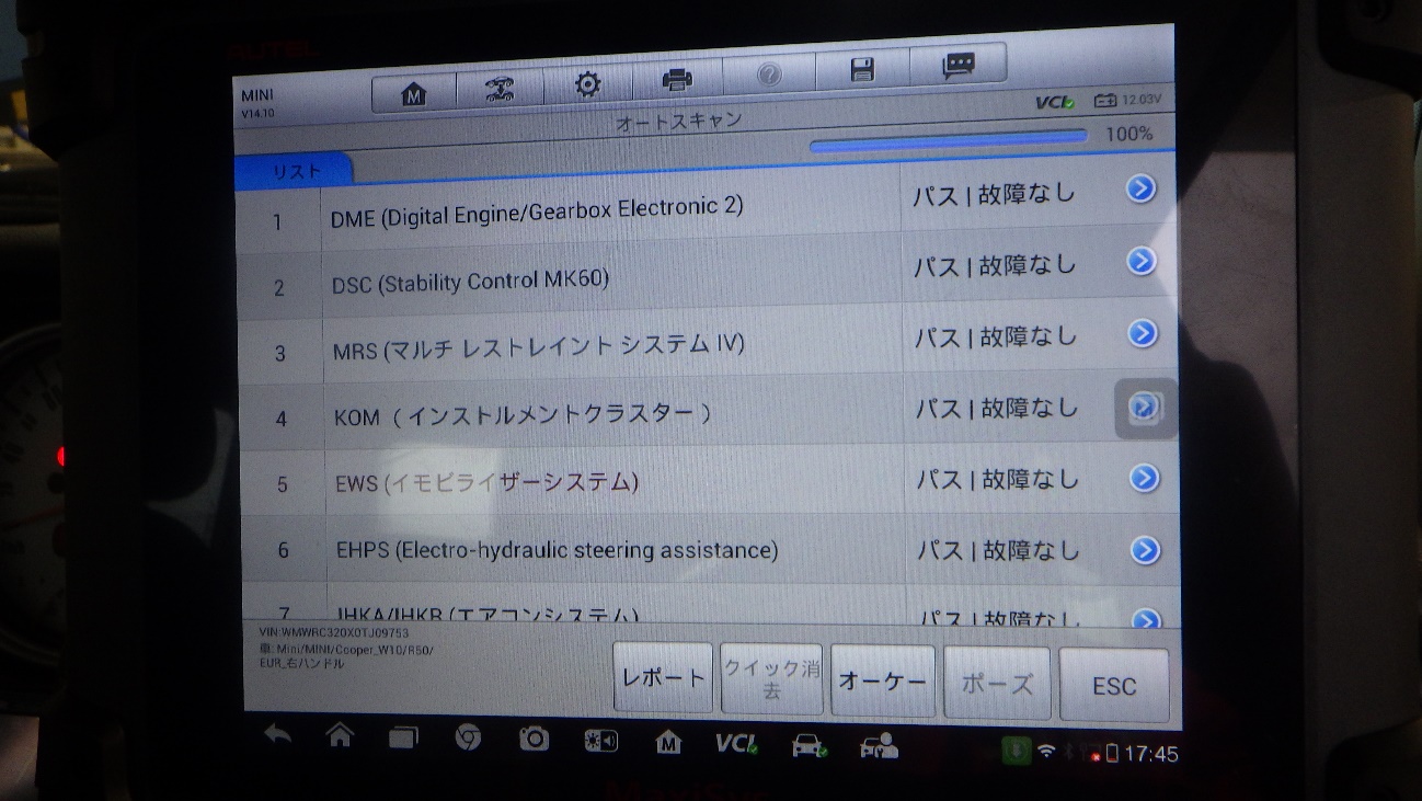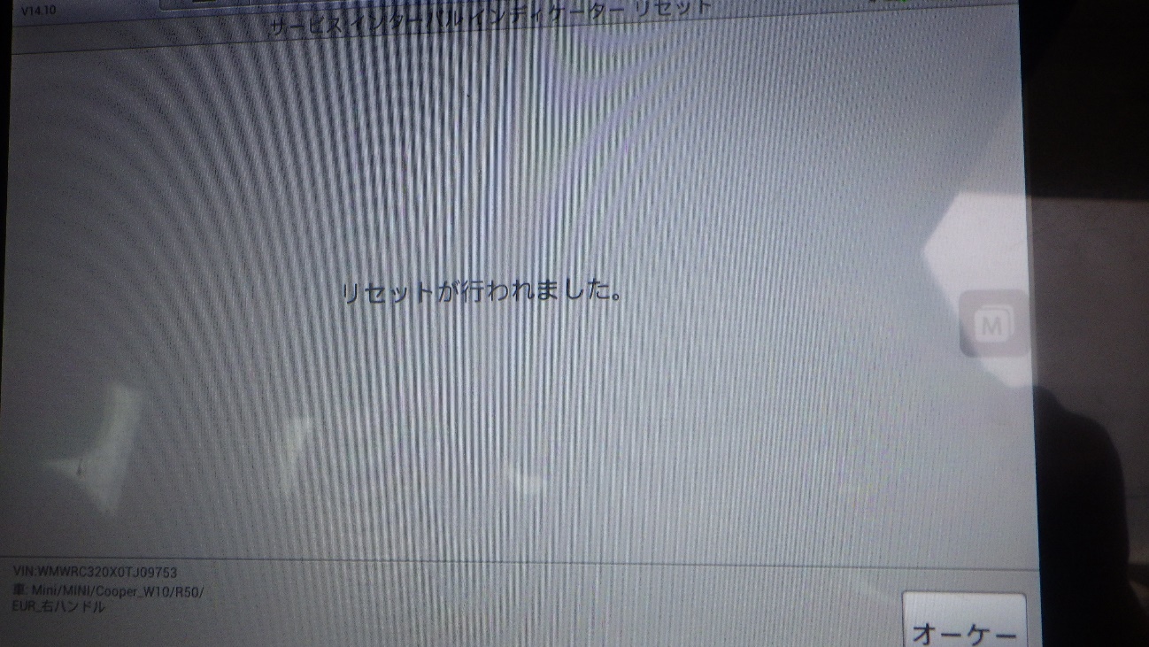 テスターにて故障コードの確認と、サービスのリセットを実施しています。