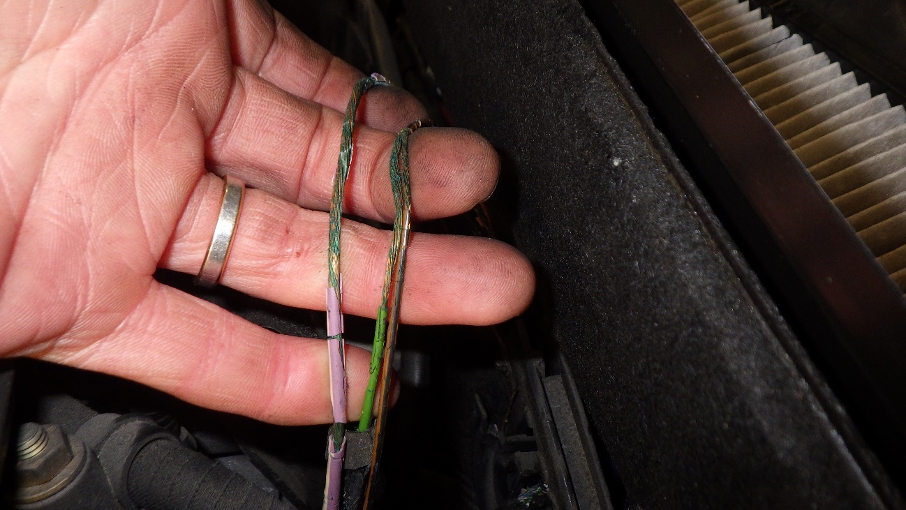 被覆の劣化崩壊と共に銅線も錆びています。