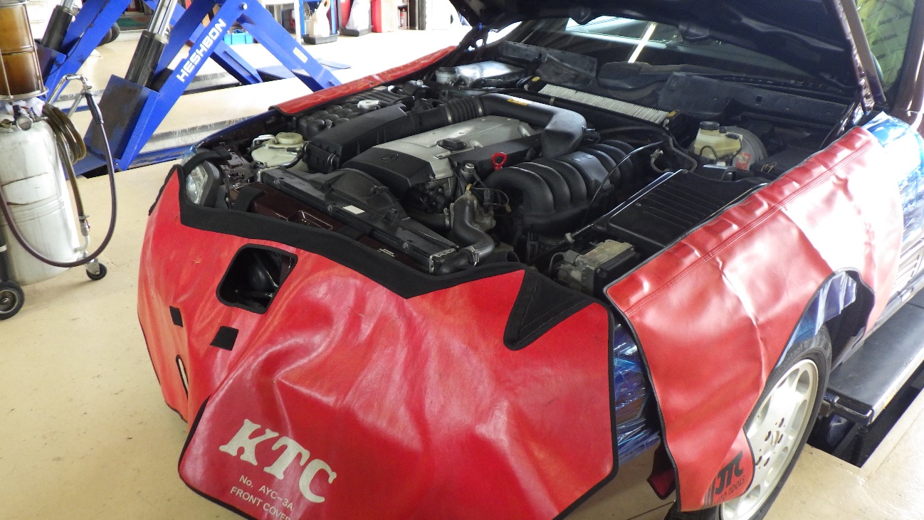 ボディを養生し作業にとりかかっています。