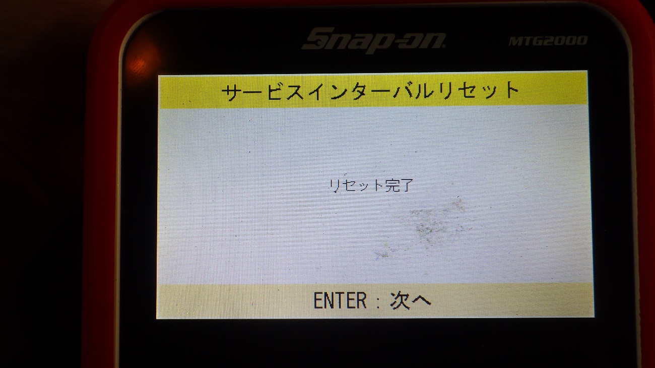 テスターにて故障コードの確認と、サービスのリセットを実施しています。