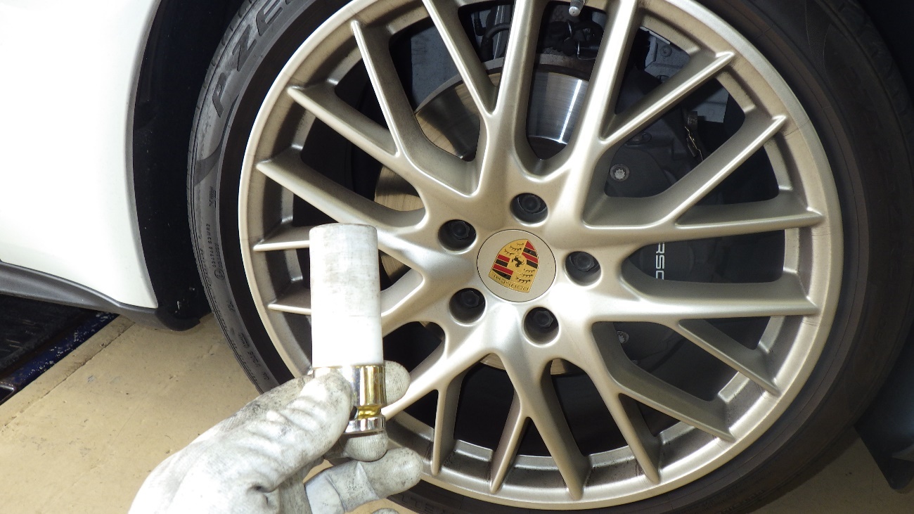タイヤを取り外す際にホイールに傷がつきにくいカバー付きのソケットを使用して