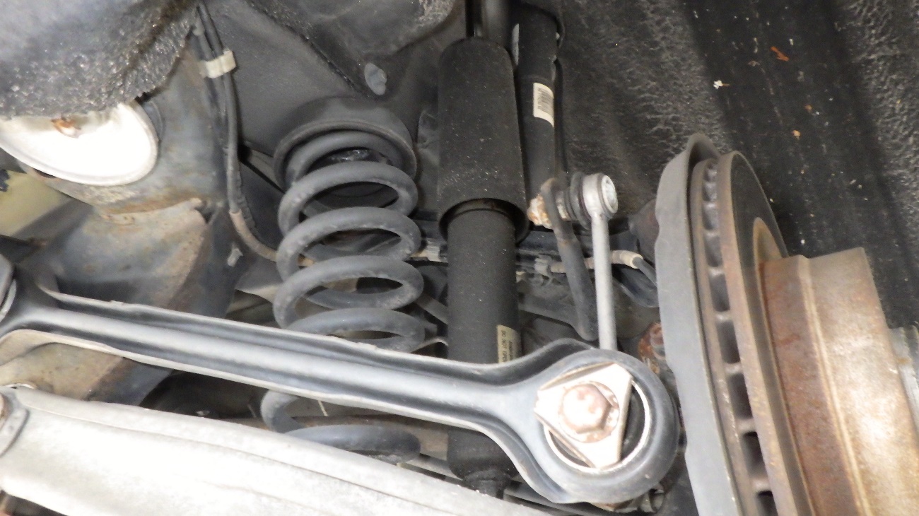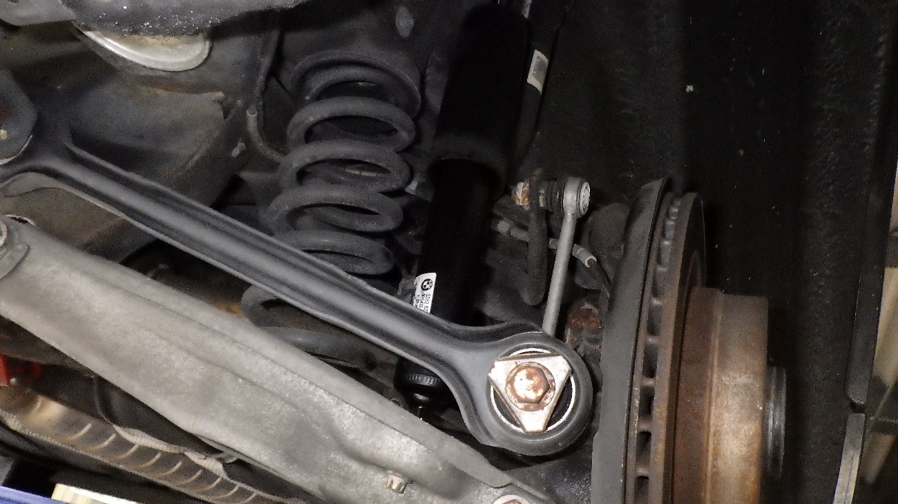 右側のリアショックアブソーバーの交換を行っております。