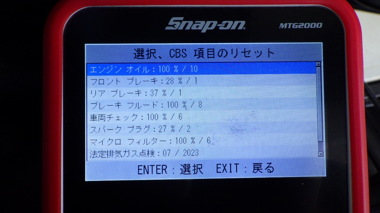 テスターにて故障コードの確認と、サービスのリセットを実施しています。