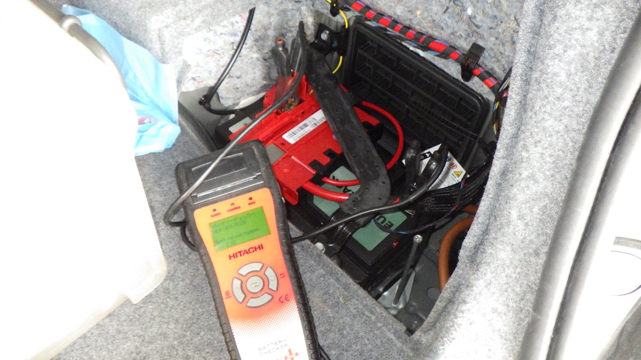 テスターにてバッテリーの点検を実施しています。