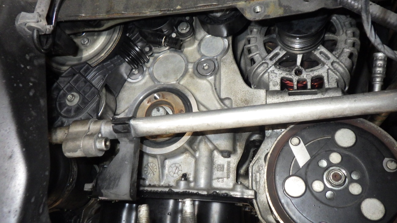 ドライブベルト、クランクプーリーを外している様子になります。