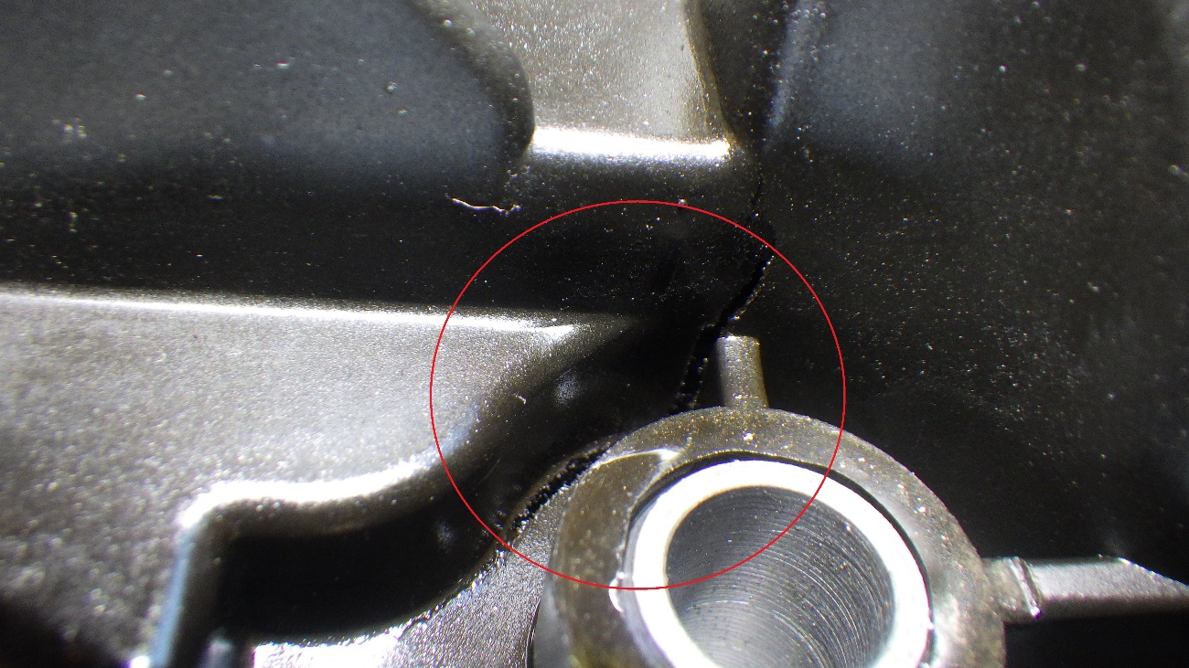 取り外して確認したところ、右下側のタペットカバーにクラックが入っておりました。