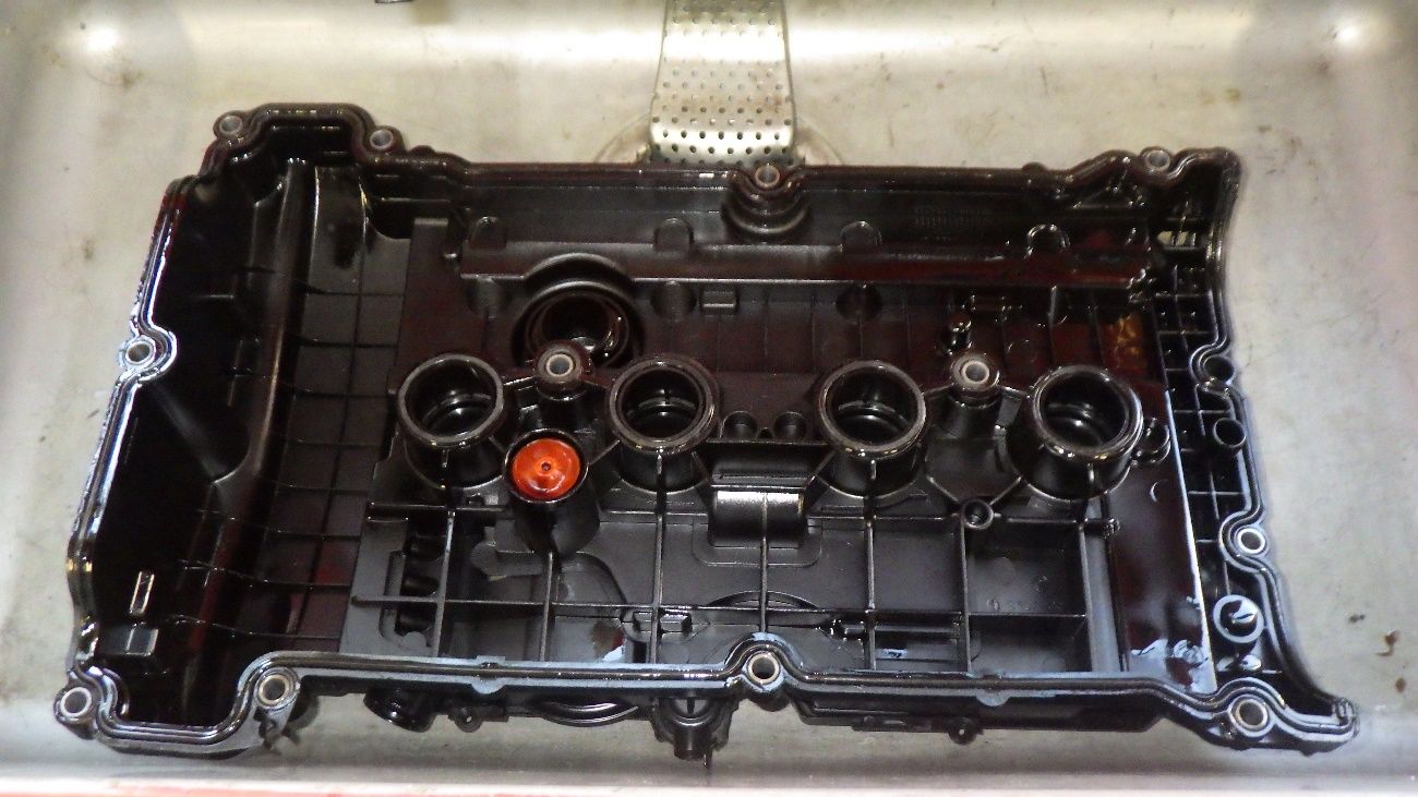 タペットカバーの組付けが完了致しました。交換後、オイル清掃を行っております。