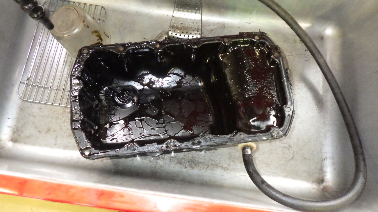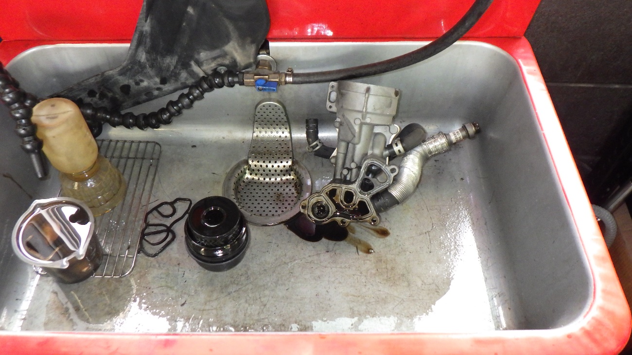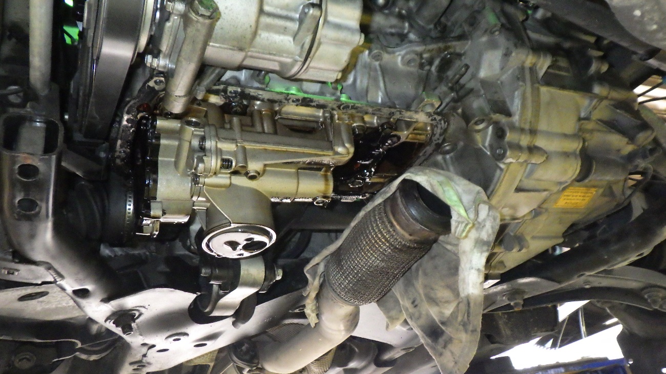 エンジンオイルパン清掃後、液体ガスケットにて再シーリングを実施。