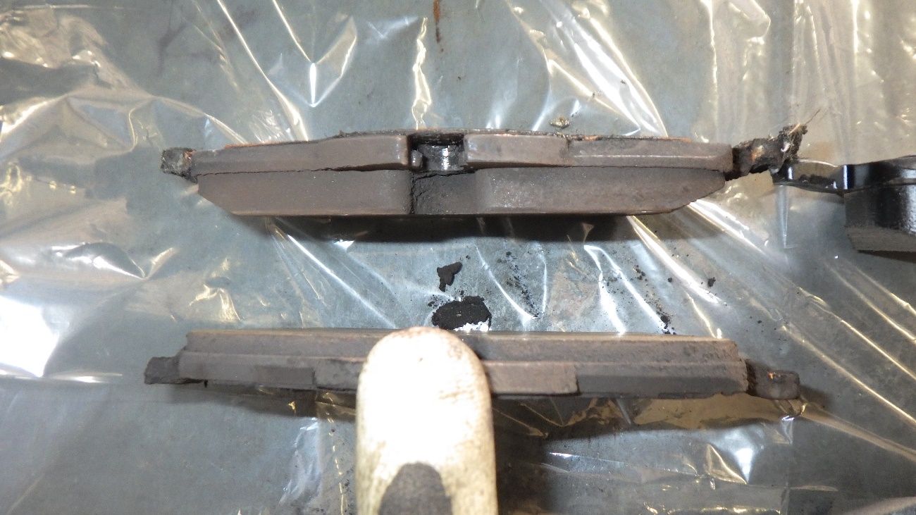既存のブレーキパッドは外側と内側と比較しても半分程無くなっておりました。