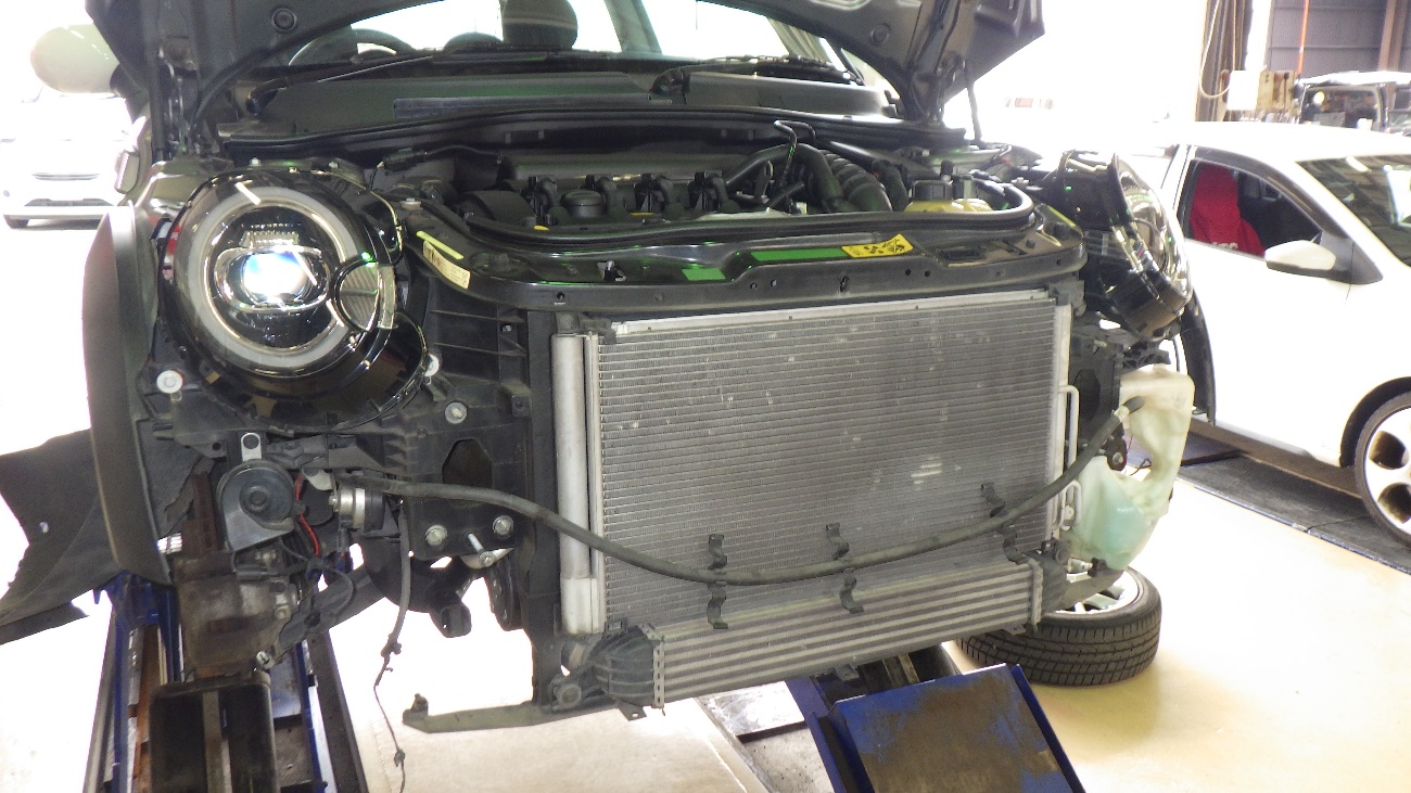 フロントバンパーを外して作業を行って参ります。