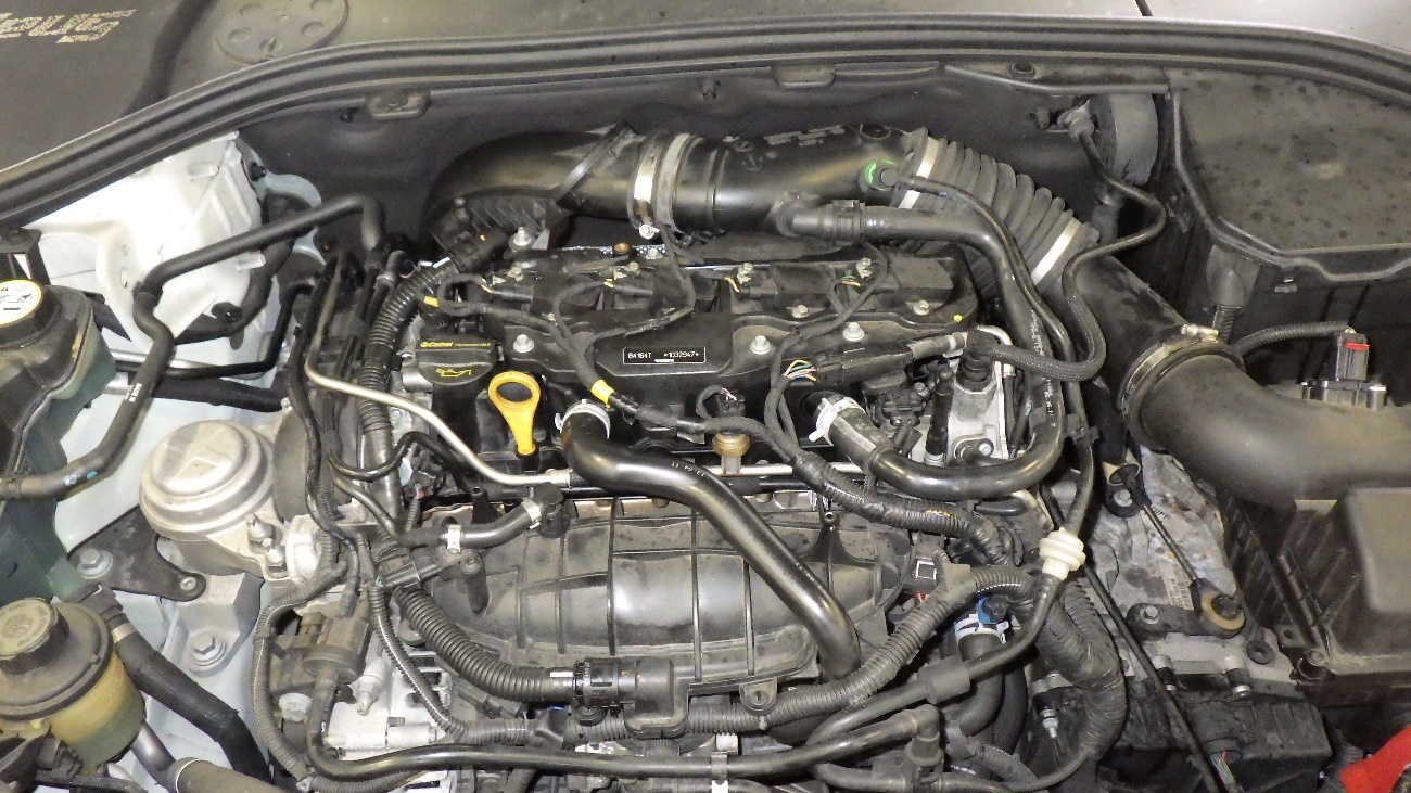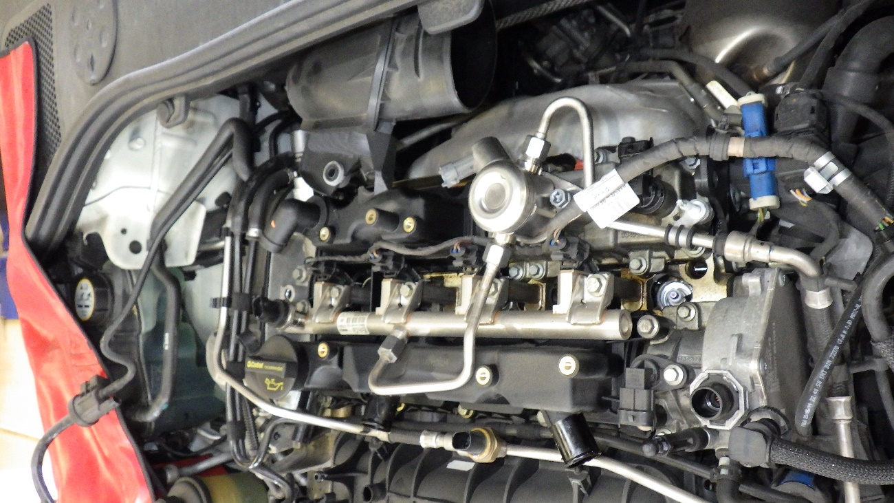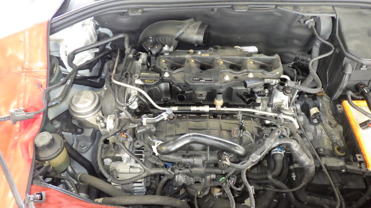 エンジン上部カバー、エアクリーナーダクト等を取り外した状態になります。